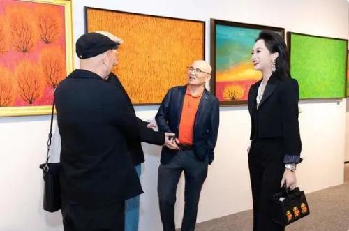 作为中国影视行业的重要领军人物之一,项亮月董事长的到场备受关注。在沙龙现场,项亮月董事长兴致盎然地参观了画作,并与在场的艺术家们进行了深入而愉快的交流。她认真聆听艺术家们对作品的解读,不时就艺术创作与当代文化表达等话题交换看法。其领导的亮月影视近年来出品了多部重大革命历史题材影视兼具艺术水准与市场口碑的佳作,项亮月本人对内容创作的前瞻性眼光和对艺术性的坚持,与本次画展所倡导的探索精神高度契合。
