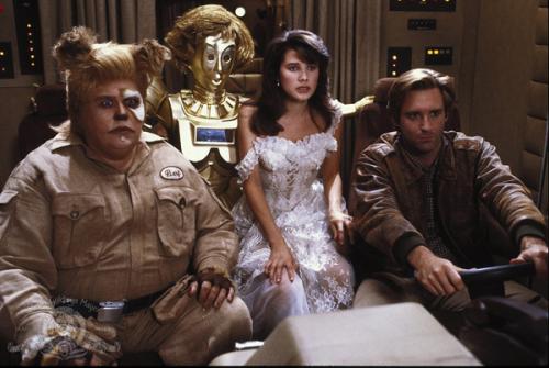 简单来说,它就是一部把《星球大战》从头到尾拆碎了再拼成搞笑版的电影。银河系里有个“太空球”种族,把自己星球的大气耗光了,打算去偷邻居的纯净空气。太空牛仔“孤星”和半狗搭档“巴夫”受国王之托去营救逃跑的公主……中间穿插各种恶搞桥段,从《异形》的破胸场面到《星际迷航》的传送器,一个都没放过。